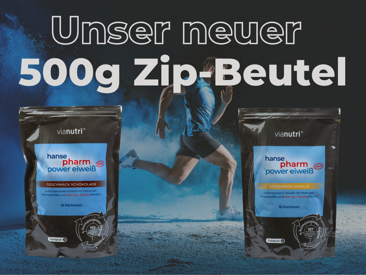 Unser neuer 500g Eiweißbeutel mit Zip-Verschluss