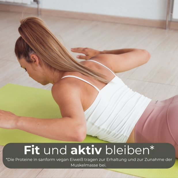 Genießen Sie sanform vegan Eiweiß für den täglichen Protein-Kick — oder einfach als leckeren Eiweißdrink zwischendurch! Nutzen Sie sanform vegan Eiweiß zur Unterstützung im Rahmen von Eiweiß-Diäten, als zuverlässige pflanzliche Eiweißquelle, wenn Sie Veganer oder Vegetarier sind, wenn Sie einen erhöhten Eiweißbedarf haben, oder auch, wenn Sie viel Sport machen oder auf einen aktiven, vitalen Lebensstil setzen.
